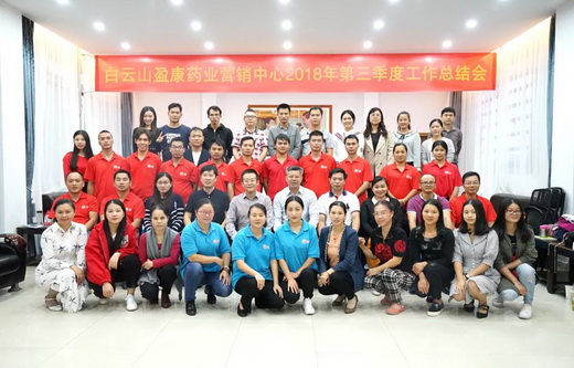 2018年(nián)10月12日,白雲山盈康藥業營銷中心2018年(nián)第三季度總結會在公司四樓會議室順利召開。公司董事長(cháng)、總經理(lǐ)程宏輝,黨總支書記、副總經理(lǐ)黃平權,副總經理(lǐ)王惠出席會議;公司營銷中心全體人員參加會議,會議由營銷副總監張睦廷主持。