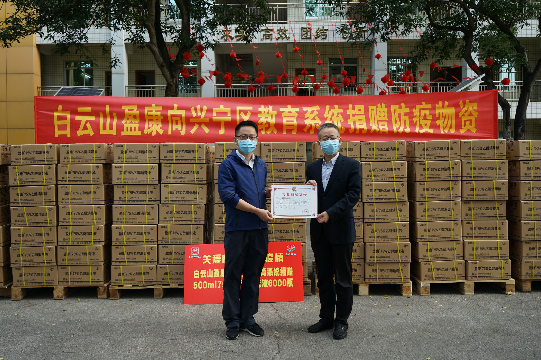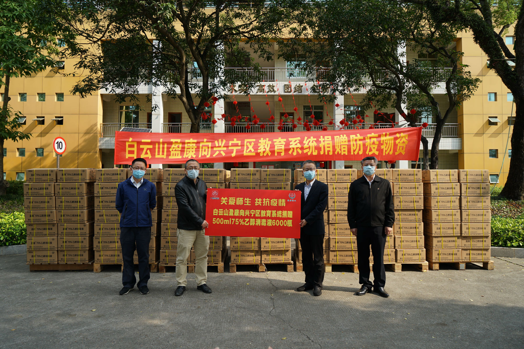 心系教育 情暖校園 ——白雲山盈康向興甯區教育局捐贈6000瓶75%乙醇消毒液