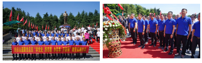為(wèi)推進黨史學(xué)習教育入腦入心入行(xíng)、走深走實走心,進一(yī)步強化黨員幹部的(de)初心意識、使命意識,6月4日至6日,白雲山盈康黨總支追尋紅(hóng)色足迹,由公司董事長(cháng)、總經理(lǐ)、黨總支副書記程宏輝,黨總支書記、副總經理(lǐ)黃平權等班子(zǐ)成員帶隊,組織全體黨員前往湖南長(cháng)沙、韶山、桂林全州開展“打卡”紅(hóng)色革命基地(dì)活動,重溫革命曆史,赓續紅(hóng)色精神血脈,凝聚奮進力量。