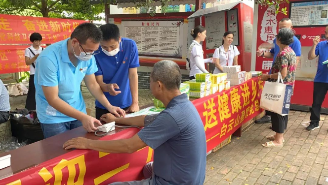 喜迎二十大,送健康進鄉村。7月9日,白雲山盈康黨總支攜手廣西衛生職業技術學(xué)院科(kē)技處黨總支、藥學(xué)系黨總支、中國(guó)民主同盟廣西區直科(kē)技黨總支、南甯柏樂(yuè)口腔醫院到南甯市(shì)興甯區三塘鎮十裏花卉長(cháng)廊福祿村,開展以高(gāo)血壓和(hé)口腔健康科(kē)普宣傳為(wèi)主題的(de)“我為(wèi)群衆辦實事”黨建共建活動,獲得當地(dì)村民的(de)歡迎和(hé)好評。