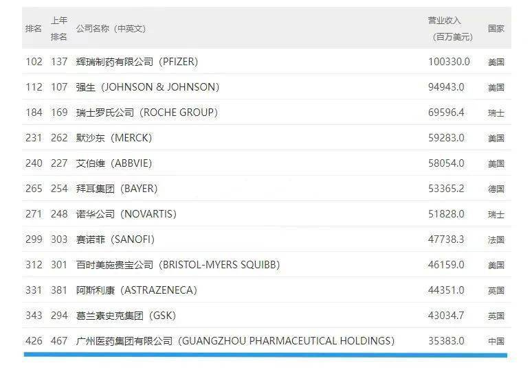 廣藥集團是唯一(yī)入選制藥分行(xíng)業榜單的(de)中國(guó)企業