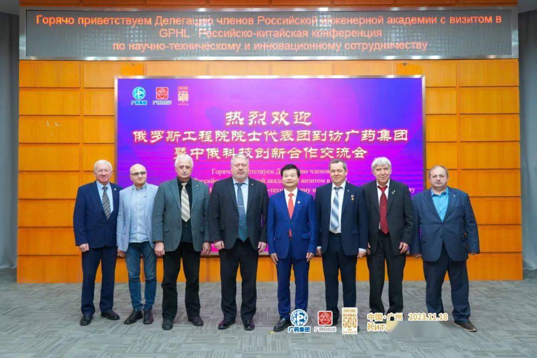 11月18日,俄羅斯工程院院士、俄羅斯工程院副院長(cháng)、駐華全權事務代表圖波列夫·瓦列裏·斯坦尼斯拉維奇率俄羅斯工程院院士代表團到廣藥集團白雲山中一(yī)奇星藥業考察調研。全國(guó)人大代表、俄羅斯工程院外籍院士、廣藥集團黨委書記、董事長(cháng)李楚源,黨委副書記陳傑輝,副總經理(lǐ)張春波,總經理(lǐ)助理(lǐ)陳偉平,廣藥白雲山總經理(lǐ)黎洪,廣藥集團工會主席李錦雲等給予熱情接待。當天,圖波列夫·瓦列裏·斯坦尼斯拉維奇為(wèi)李楚源頒發了俄羅斯工程院外籍院士證書。