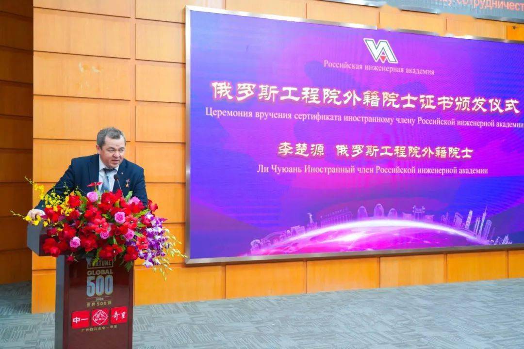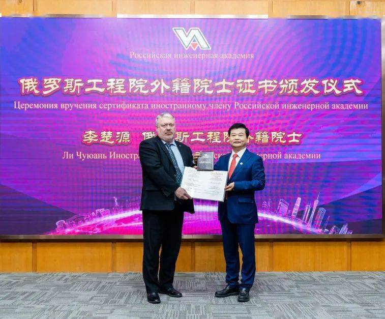 今年(nián)6月,李楚源當選俄羅斯工程院外籍院士。會上,俄羅斯工程院院士、代表團團長(cháng)斯克裏波奇卡·奧列格·伊萬諾維奇主持證書頒發儀式,圖波列夫·瓦列裏·斯坦尼斯拉維奇為(wèi)李楚源頒發了外籍院士證書,标志着李楚源在生物醫藥健康領域取得的(de)成就得到了俄羅斯學(xué)術界的(de)高(gāo)度認可(kě)。