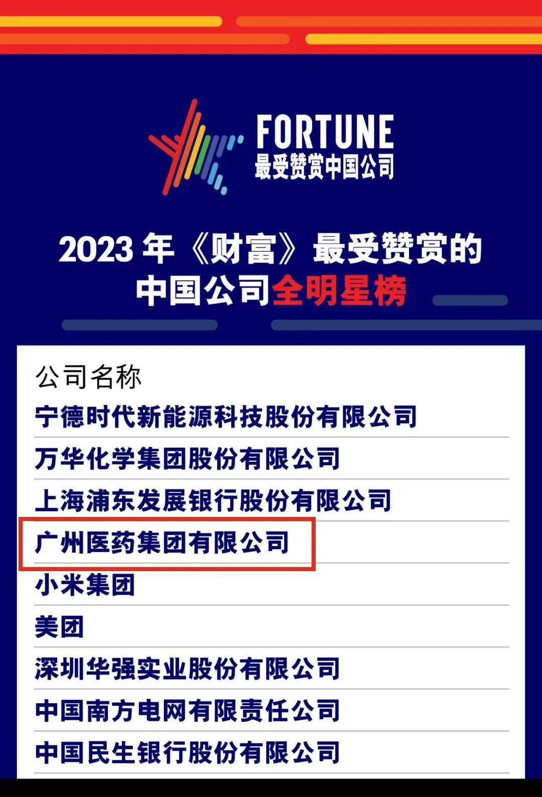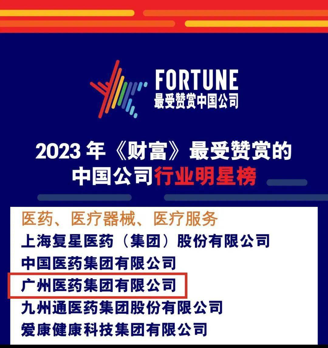 唯一(yī)一(yī)家廣州本土企業!廣藥集團榮登2023年(nián)《财富》最受贊賞的(de)中國(guó)公司全明星榜
